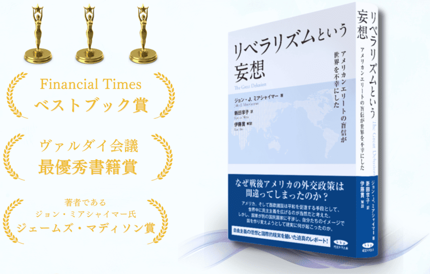 などのリアルな世界の力学を、思い込みに惑わされずに、知ることができるようになります。ですが、そのような書籍は日本にないため、海外の一流の学者の書籍を翻訳出版することにしました。それが、ジョン・ミアシャイマー著『リベラリズムという妄想』という書籍です。