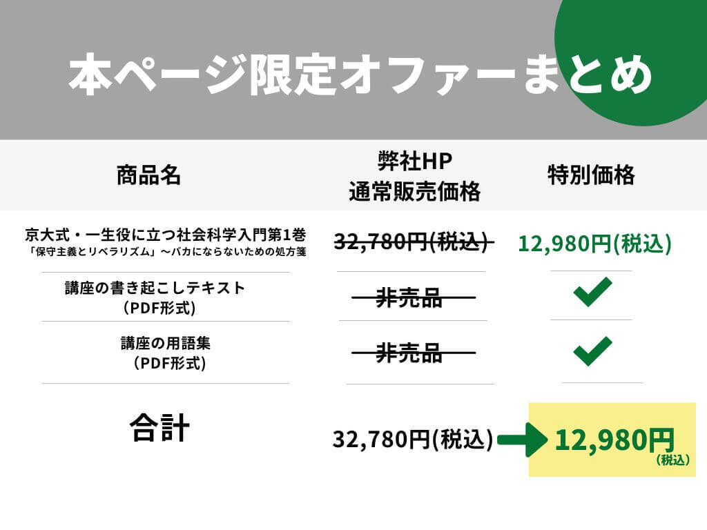 なぜなら、この講座では、政治家がバカなことを繰り返してきた原因であり、現代の日本人が知らず知らずのうちに陥っている「リベラリズム」という考え方の正体を暴き、二度と騙されないための知恵を解説するからです。